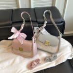 This double strap bow shoulder bag for women is designed with a cute scarf bow and compact shape, making it perfect for trendy everyday use. The soft PU leather and elegant finish add a stylish touch to any outfit.
